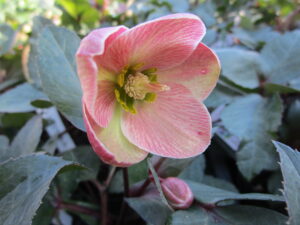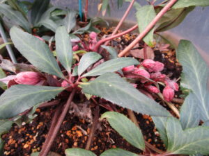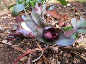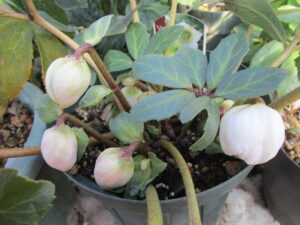 つぼみが先に上がってくる。ニゲル交配種、異種間交配種や氷の薔薇シリーズなど。早咲の傾向があります。