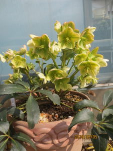 クリロの成長が遅い為ご満足いただけないのが残念です。 クリロも暖かくなったので頑張って背伸びしています。 クリロもいろいろな種類がありますので、その種類が一度に咲くわけではありません。 現状の見頃の株は交配の親株にニゲルを使ったものが満開に咲いております。(ジョーガー、 バラーディア、シナモンスノー、ウィンタービーナス、グリーンフロストなど) ピンクフロストはこれから咲きます。花友さんにあと10日後に来てくださいとお声がけいたしております。