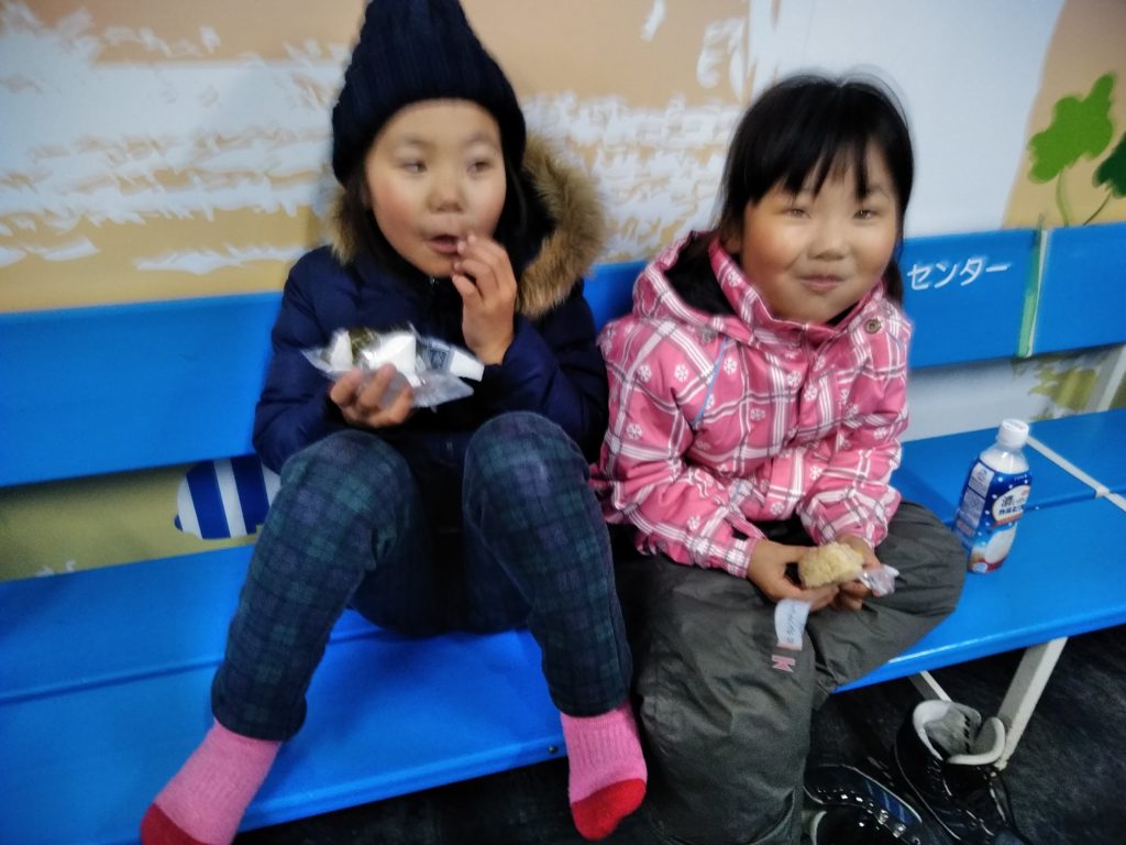 ピントがずれてごめんね。スケート随分上達しました。スケートをしている時よりも食べている時の方が笑顔が素敵かな?
