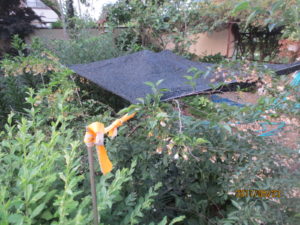 昨年までは遮光ネットを秋までハウスの屋根に掛けっぱなし、栗の木の部分のクリロは日照不足でかなり枯らしてしまいました。今年は内作で行い、ワンタッチで開閉できるように考えました。![]()